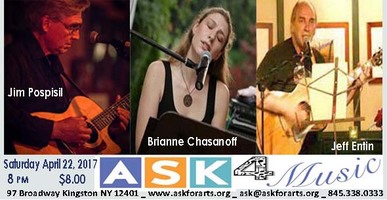 Saturday 8:00 pm to 10:00 pm | April ASK for Music at the ASK, Jeff Entin, Brianne Chasanoff, Jim Pospisil Singer-Songwriter, Folk/Traditional, and Acoustic | Arts Society of Kingston (ASK) 97 Broadway Kingston, NY See Map |