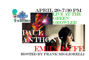 Thursday 7:30 pm | Singer Songwriter Series with Frank Migliorelli and Mark Minkler, Emily Duff, Paul Anthony Singer-Songwriter, Americana | The Green Growler 4 Croton Point Ave. Croton on Hudson, NY See Map |