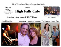![]() Thursday 7:00 pm to 9:30 pm | First Thursdays Singer Songwriter Series with Don and Maureen Black, Myael Simpkins, Robin Baker and Eric Stamberg, The Dempsey Nelson Way Singer-Songwriter | High Falls Cafe 12 Stone Dock Road High Falls, NY See Map |