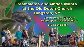 On Saturday June 24th at 8pm, there will be a concert at The Old Dutch Church with a 9-person collaboration between 2 world music ensembles: Andes Manta, a 4 brother band from the Andes mountains of Ecuador who have been touring US for over 25 years, playing over 35 traditional instruments---and Mamalama, a Hudson Valley based indie-orchestra that includes harps, dulcimers, ethereal choral singing, cello, homemade music boxes, and Native American flutes. The concert will feature the original compositions of both ensembles, as well as traditional songs from Native South and North America. The thematic elements of the songs explore an adventurous range of subject matter, including Inuit Mythology, mysticism, traditional Andean dance and festival songs, and the re-creation of natural sounds and environments (whales and oceanic textures, bird soundscapes, rain forest).