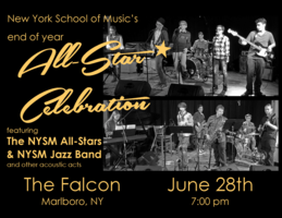 ![]() Wednesday 7:00 pm | New York School of Music End of Year All-Star Celebration! with The NYSM All-Star Bands Rock (classic), Pop/Soft Rock, and Jazz | The Falcon Rt. 9W Marlboro, NY See Map |