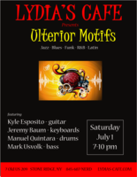 Saturday 7:00 pm to 10:00 pm | Jeremy Baum - keys, Kyle Esposito - guitar, Manuel Quintana - drums, Mark Usvolk - bass Motown/R&B, Jazz, and Blues | Lydia's Cafe & Bar 7 Old US Highway 209 Stone Ridge, NY See Map |