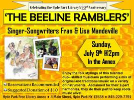Join us in welcoming back the Beeline Ramblers (Fran Mandeville and Lisa Burnstine Mandeville) in concert at the Hyde Park Library Annex. The Beeliners do a mix of remarkable originals and classic Americana. They are gifted multi-instrumenalists and their 2-part harmonies are unsurpassed. Lovers of acoustic Americana do not want to miss this show.For Information | ||