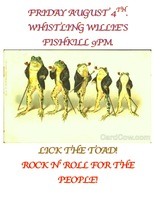 WELL LICK THE TOAD IS EXCITED TO RETURN TO WHISTLING WILLIE'S FISHKILL!! THIS IS A GREAT PLACE WITH GREAT FOOD AND DRINKS!! AND SOME REALLY NICE PEOPLE WORK HERE THAT WILL MAKE YOU FEEL RIGHT AT HOME!!! SO COME ON OUT AND PARTY WITH THE BAND THAT BRINGS OUT EVERYONE'S INNER CHILD!!! LICK THE TOAD!! SEE YA THERE! STUFF | ||