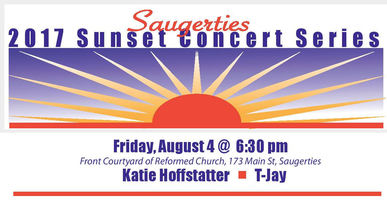 Friday 6:30 pm to 8:30 pm | Free concert in the park! with T-Jay, Katie Hoffstatter Acoustic, Americana, and Singer-Songwriter | Saugerties Reformed Church 173 Main St. Saugerties, NY See Map |