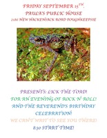 Friday 8:30 pm | Come On Out And Celebrate The Reverend's Birthday! with Lick The Toad Rock (classic), Blues | PAULA'S PUBLIC HOUSE 2186 NEW HACKENSACK RD. POUGHKEEPSIE, NY See Map |