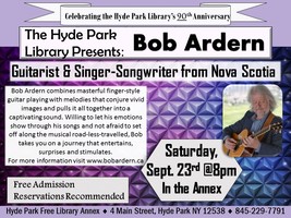 Saturday 8:00 pm | Celebrated Canadian Guitarist and Songwriter To Appear In Hyde Park with Bob Ardern Acoustic, Singer-Songwriter, and Folk/Traditional | Hyde Park Free Library Annex 2 Main St. Hyde Park, NY See Map |