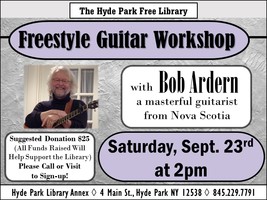 Saturday 2:00 pm to 4:00 pm | Freestyle Workshop With Celebrated Canadian Guitarist with Bob Ardern Folk/Traditional, Singer-Songwriter | Hyde Park Free Library Annex 2 Main St. Hyde Park, NY See Map |