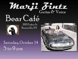 ![]() Saturday 5:00 pm to 9:00 pm | Streamside Dining with Live Music! with Marji Zintz Acoustic, Contemporary. and stuff you like | The Bear Café 295 Tinker Street Woodstock, NY See Map |