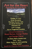 Help us celebrate the life and art of Jan Horton featuring her paintings with music performances. All proceeds got to the American Heart Associatio $15 suggested donation.