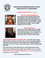 Sunday 3:00 pm to 5:00 pm | Morning Music Club Fabulous Fall Fundraiser with Kent Axell, Mentalist/Magician, Albert Ahlf, pianist Jazz | 23 Dogwood Lane in Pomona, NY 23 Dogwood Lane Pomona, NY See Map |