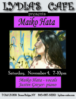 Saturday 7:00 pm to 10:00 pm | Vocalist Maiko Hata, Justin Greyer - piano Jazz | Lydia's Cafe & Bar 7 Old US Highway 209 Stone Ridge, NY See Map |