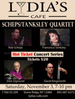 Saturday 7:00 pm to 10:00 pm | Rob Scheps/Francesca Tanksley Quartet, Rob Scheps - sax, Francesca Tanksley - piano, Eliot Zigmund - drums, David Kingsnorth - bass Jazz | Lydia's Cafe & Bar 7 Old US Highway 209 Stone Ridge, NY See Map |