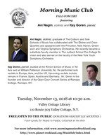 Tuesday 10:30 am to 11:30 am | Morning Music Club Fall Concert with Avi Nagin, violinist and Itay Goren, pianist Classical/Opera, Instrumental | Valley Cottage Library 110 Rt 303 Valley Cottage, NY See Map |