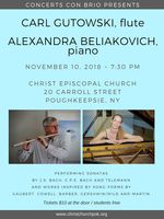 Saturday 7:30 pm to 9:00 pm | Flute and Piano Recital with Carl Gutowski, flute, Alexandra Beliakovich, piano Classical/Opera | Christ Episcopal Church 20 Carroll Street Poughkeepsie, NY See Map |