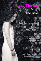 Saturday 7:00 pm to 10:00 pm | Nancy Tierney - vocals, Jim Curtain - bass, Ken McGloin - guitar Jazz, Pop/Soft Rock | Lydia's Cafe & Bar 7 Old US Highway 209 Stone Ridge, NY See Map |