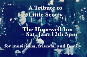 A Tribute to Little Scotty, In Memory: Saturday, January 12th ~4pm until whenever. Everyone will be there. We're having a get-together and Tribute Show to honor and pay our respects to our long-time friend & blues musician. Come, hang out- play music- the stage is open to everyone & anyone to come perform in honor of Little Scotty. We have backline equipment. Bring a guitar or harmonica, or come sing a few tunes with the many musicians that have performed with Little Scotty & The Knockouts over the years ... Little Scotty brought a lot of musicians together in the Hudson Valley. He reminded us that music is not about ego- it's about coming together in the spirit of something greater. Let's have a good time- play music & party at the Hopewell Inn. Please bring your own food if possible (potluck-style). There will be something to sign for people who wish to share & write their memories & condolences. Please share this event with anyone who knew Little Scotty or went to the blues jams | ||