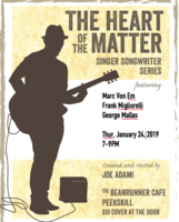 Thursday 7:00 pm to 9:00 pm | Joe Adami presents: with Heart of the Matter - A songwriter's series Singer-Songwriter | BeanRunner Cafe 201 S. Division Street @ Esther Peekskill, NY See Map |