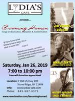 Saturday 7:00 pm to 10:00 pm | Becoming Human, Marji Zintz - vocals/perc/guitar, Jim Kunkel - guitars, Micky Kopchak - bass Acoustic | Lydia's Cafe & Bar 7 Old US Highway 209 Stone Ridge, NY See Map |