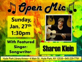 Sunday 1:30 pm | Open Mic at HPFL Library w/ featured act S. Klein with Open mic w/ featured act: Sharon Klein Acoustic, Folk/Traditional, and Americana | Hyde Park Free Library Annex 2 Main St. Hyde Park, NY See Map |