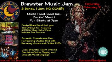 Saturday 7:00 pm to 11:00 pm | Brewster Music Jam with Traveling Riverside Blues Band, Joe K, Too Fat Guys Acoustic, Blues, and Rock (modern) | Moonlight Cafe 850 RT 22 Brewster, NY See Map |