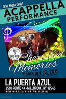Presenting CHERISHED MEMORIES BEST OF DOOWOP ACAPPELLA MARK YOUR CALENDAR ... YOU DON'T WANT TO MISS THIS!! Come join us Friday, February 15th, 2019 we will be presenting at La Puerta Azul, Millbrook, NY from 7:00 pm to 10:00 pm. More Info: Reservations Call 845- 677-Azul (2985) See you all there! | ||