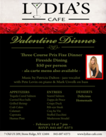 Come join us for lovely Valentine's dinner by firelight with great food and great music.