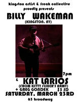 Saturday 7:00 pm to 10:00 pm | A Night of Kingston Greats with Billy Wakeman, Kat Larios, Greg Gondek Singer-Songwriter, Acoustic, and Alternative | Kingston Artist Collective 63 Broadway Kingston, NY See Map |