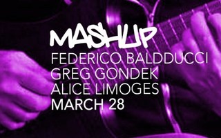 Listen up! A great Mashup is coming Thursday, March 28, 8 PM at Green Kill, featuring Federico Balducci, Greg Gondek, and Alice Limoges. Tickets are 10 dollars at the door and may be reserved on Eventbrite.com. Green Kill offers soft drinks and light healthy snacks at Ozubar and you may BYOB. Seating is limited to 45. Come join us and cheers.