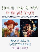 Lick The Toad returns to The Alley Kat!! So come on out and party with the band that brings out your inner Child!! And have some great food and drink while your at it! The Staff at The Alley Kat will make you feel right at home!! SEE YA THERE!!STUFF | ||