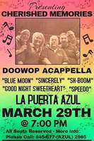 Presenting CHERISHED MEMORIES BEST OF DOOWOP ACAPPELLA MARK YOUR CALENDAR ... YOU DON'T WANT TO MISS THIS!! ROCK AROUND THE CLOCK! Good Time Oldies from the '50s and '60s live. Come join us Friday, March 29th we will be presenting at La Puerta Azul, Millbrook, NY from 7:00 pm to 10:00 pm. More Info: Reservations Call 845- 677-Azul (2985) See you all there! | ||