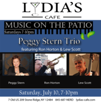 Saturday 7:00 pm to 10:00 pm | Peggy Stern Trio, Peggy Stern - piano, Ron Horton - trumpet, Lew Scott - bass Jazz | Lydia's Cafe & Bar 7 Old US Highway 209 Stone Ridge, NY See Map |