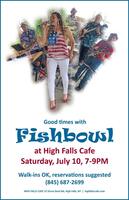 To close out High Falls Day Fishbowl will be performing at the High Falls Cafe from 7pm-9pm on Saturday, July 10, 2021. The High Falls Cafe is located at the Stone Dock Golf Course, 12 Stone Dock Road, High Falls, NY, 12440. Reservations are recommended but not necessary. We're playing outside, weather permitting. Come party and dance your COVID weight off!for directions to the High Falls Cafe | ||
