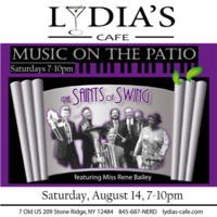 Saturday 7:00 pm to 10:00 pm | the Saints of Swing featuring Rene Bailey Motown/R&B, Swing/Jump, Big Band, and Blues | Lydia's Cafe & Bar 7 Old US Highway 209 Stone Ridge, NY See Map |