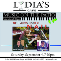 Saturday 7:00 pm to 10:00 pm | Neil Alexander & Nail, Neil Alexander – keyboard, Nadav Snir-Zelniker – drums, Brian Mooney – bass Jazz, Funk | Lydia's Cafe & Bar 7 Old US Highway 209 Stone Ridge, NY See Map |