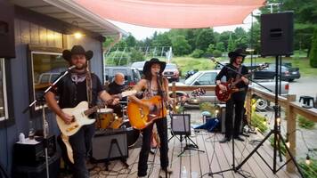 The BBQ is GREAT here and its a fun atmosphere to join with friends for an evening of food, drink and music from the Chain Gang!
