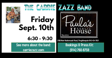 Friday 6:30 pm to 9:30 pm | Live Music at the Pub with Carrie Zazz Covers, Rock (classic), and Pop/Soft Rock | Paula’s Gastro Pub 2186 New Hackensack Road Poughkeepsie, NY See Map |