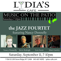 Saturday 7:00 pm to 10:00 pm | the Jazz Fourtet featuring Nancy Donnelly, Nancy Donnelly - vocals, Steve Raleigh - guitar, Lew Scott - bass, Matt Garrity - drums Jazz, Pop/Soft Rock, and Motown/R&B | Lydia's Cafe & Bar 7 Old US Highway 209 Stone Ridge, NY See Map |