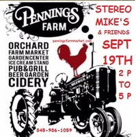 Stereo Mike's and Friends (Michael Gailie of Tangent, John Irizarry of The Lost Dogs, Pete Verutes of Groovy Tuesday & Bill Lindsay of Skanga/Strings/Stereo Mike's) bring their musical vagabond road show to Penning's Farm Market's Beer Garden on Sunday, September 19th from 2 pm to 5 pm. A wonderful day of music, food, friends and drink with every facet of what the planet is offering us on this wonderful day. We scream to hang onto the last legs of the other side of summer while enjoying all the farm has to provide us with it's fall offerings. Hope to see you there. | ||