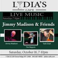 Saturday 7:00 pm to 10:00 pm | Jimmy Madison & Friends, Jimmy Madison - drums, Tim Regusis - piano, Tarik Shah - bass Jazz | Lydia's Cafe & Bar 7 Old US Highway 209 Stone Ridge, NY See Map |