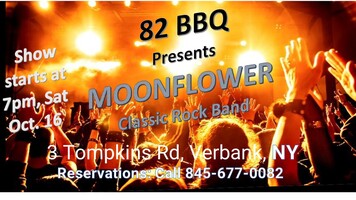 Saturday 7:00 pm to 10:00 pm | Come hear some great Classic Rock and Roll !! with MOONFLOWER Rock (classic) | 82 BBQ 3 Tompkins Road Verbank, NY See Map |