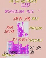 Saturday 3:00 pm to 4:30 pm | 3 Forces in Free Jazz Meet in Kingston! with Hakim Jami, Juma Sultan, Art Bennett Jazz | The Lace Mill 165 Cornell Street Kingston, NY See Map |