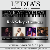 Saturday 7:00 pm to 10:00 pm | Rob Scheps Core-tet, Rob Scheps - saxophones, Jamie Reynolds - piano, Cameron Brown - bass, Anthony Pinciotti - drums Jazz | Lydia's Cafe & Bar 7 Old US Highway 209 Stone Ridge, NY See Map |