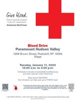 Tuesday 10:00 am to 1:00 pm | Blood Drive with Red Cross Blood Drive | Paramount Hudson Valley Theater 1008 Browm Street Peekskill, NY See Map |