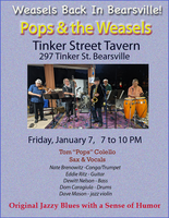 Pops and the Weasels return to the Tinker St. Tavern with their unique original blues and jazz | ||