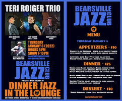 THIS THURS JAN 6 - Live Jazz Music & Dinner featuring Teri Roiger Trio with special guest Matt Munisteri