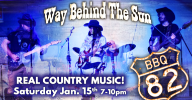Saturday 7:00 pm to 10:00 pm | Real Country Music & BBQ with Way Behind The Sun Country | 82 BBQ 3 Tompkins Road Verbank, NY See Map |