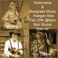 It's like Hot Tuna meets Bill Monroe on a fast train then Doc Watson , Billy Strings ,Tommy Emmanuel and Robert Johnson get on board , whoo-hoo! Stop in for a beer and some tunes. Fiery Pick'n and old school harmony singing. Helping me out are Tom white on fiddle, banjo & mandolin along with Roy Coates on the big bass. Hope to see u there-Bob | ||