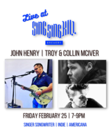 Friday 7:00 pm to 9:00 pm | Live at SSKB ft. John Henry and Troy & Collin McIves Americana, Singer-Songwriter, and Acoustic | Sing Sing Kill Brewery 75 Spring Street Ossining, NY See Map |