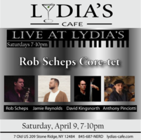 Saturday 7:00 pm to 10:00 pm | Rob Scheps Core-tet, Rob Scheps - saxophones, Jamie Reynolds - keys, Anthony Pinciotti - drums, David Kingsnorth - bass Jazz | Lydia's Cafe & Bar 7 Old US Highway 209 Stone Ridge, NY See Map |